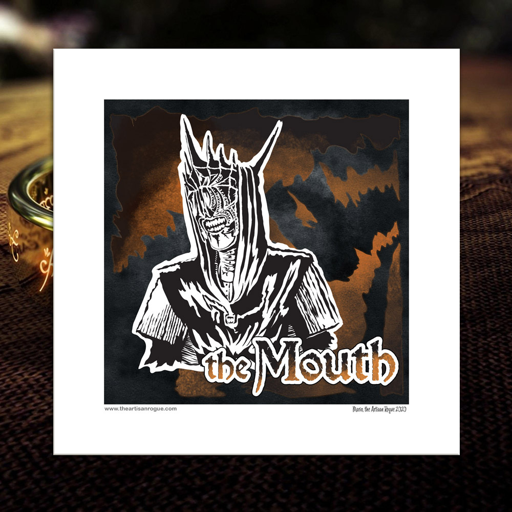 This is an 8 inch x 8 inch art reproduction of of the dark servant of Sauron, the Mouth.